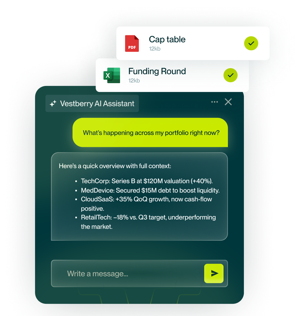 Vestberry is the AI-powered single source of truth VCs need to consolidate portfolio data, automate reporting, and drive fund performance.
