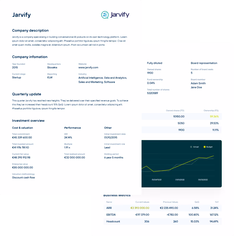 Our mission is to help VC finance, operations, and investment teams turn scattered portfolio data into a single, reliable foundation and actionable insights that support value creation, reporting, and long-term performance.