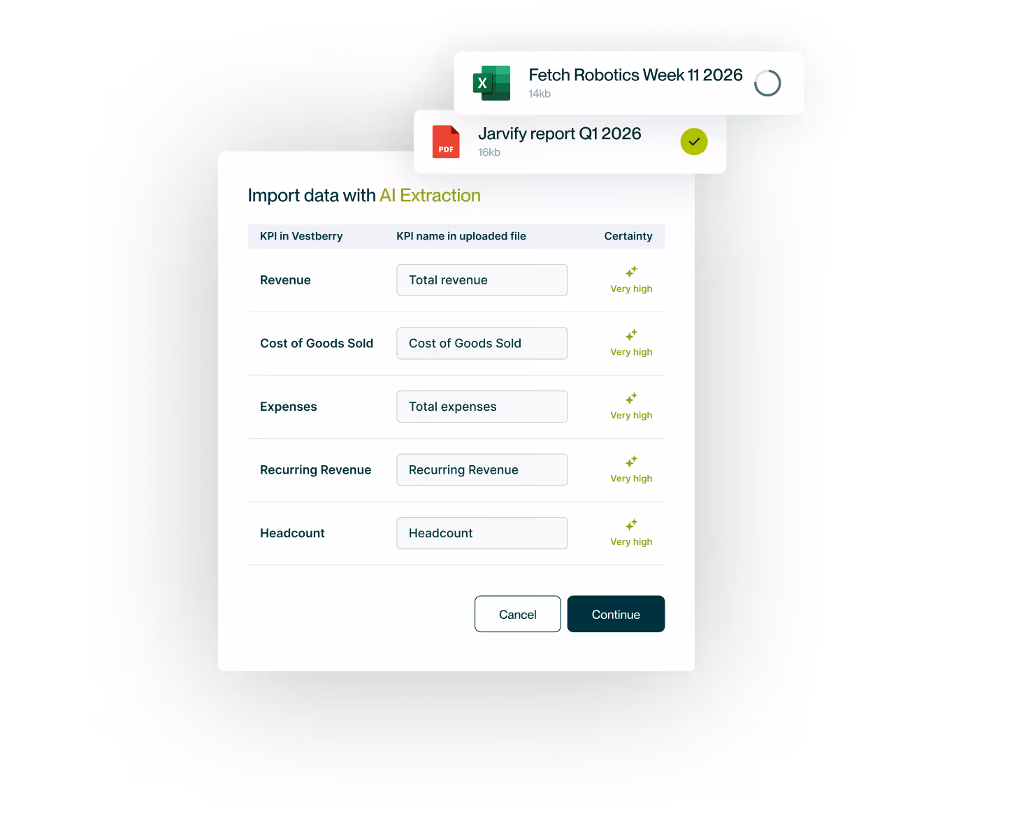 From AI extraction to reporting reminders, Vestberry's data collection reduces manual entry, email chasing, and ensures portfolio companies report accurate data on time.